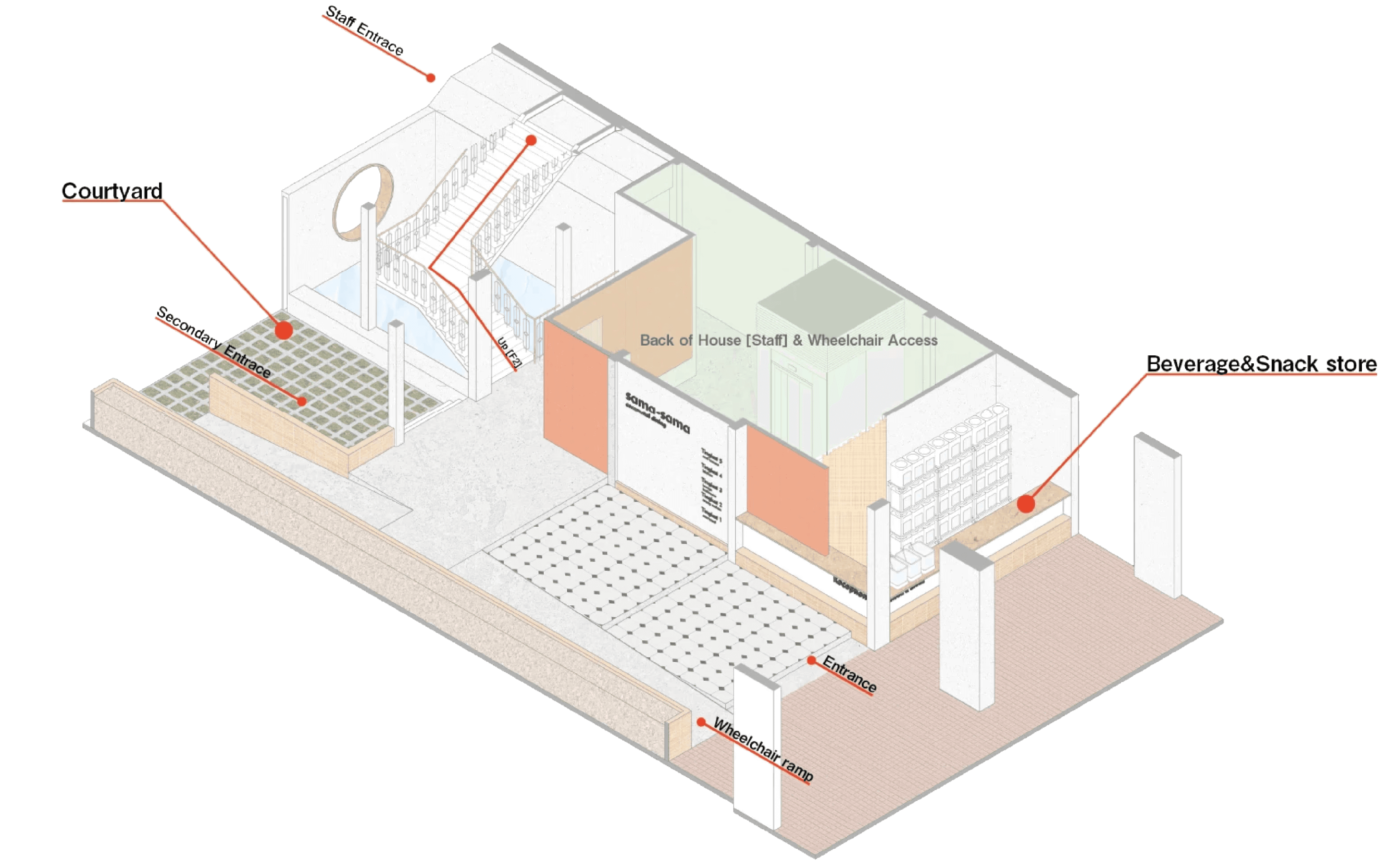 [courtyard, beverage & snack store]