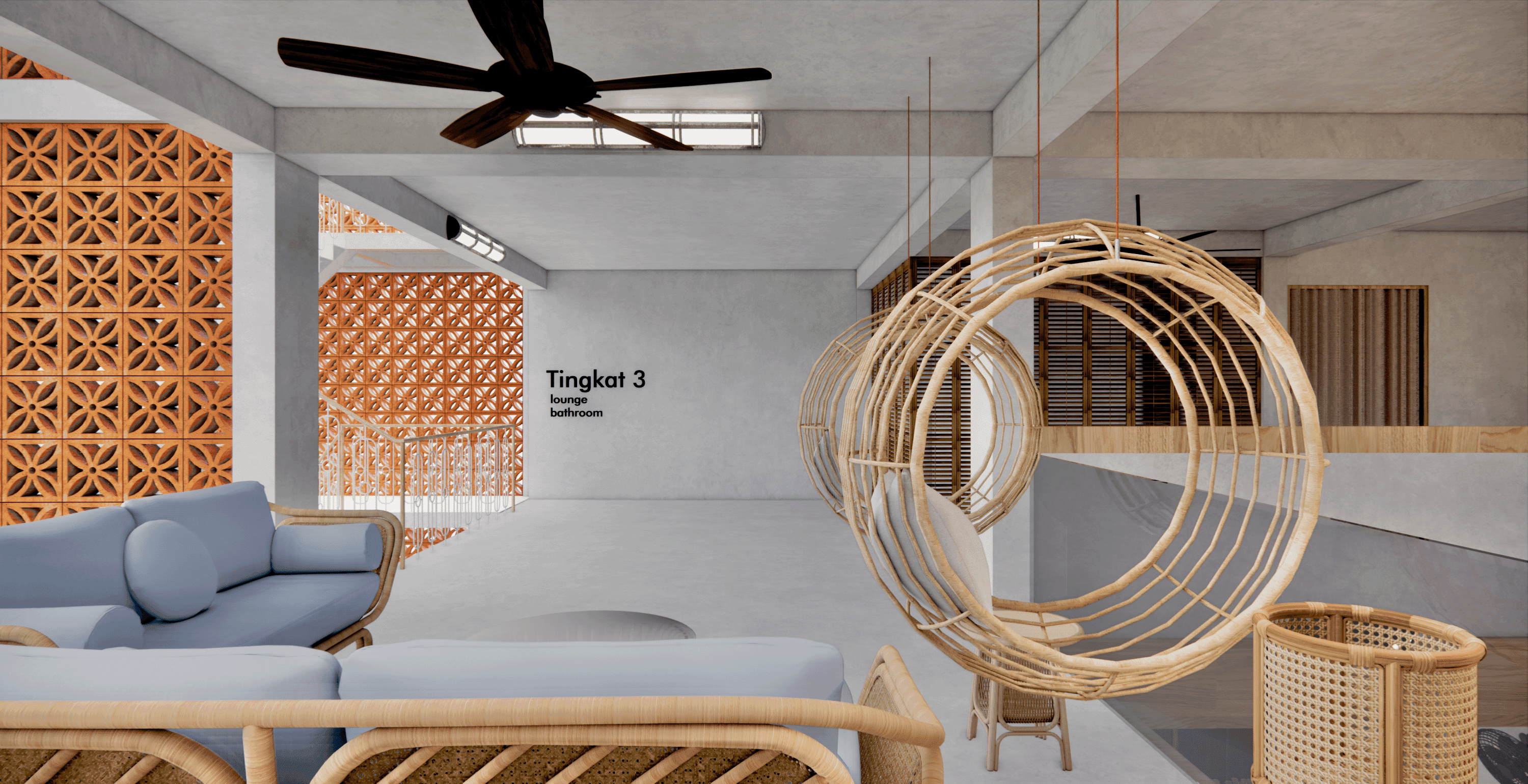 In similar fashion to how Kampongs of the past are relatively exposed, and free, where the windows & doors are always open. The space blurs the line between interior & exterior, combining both spaces together.