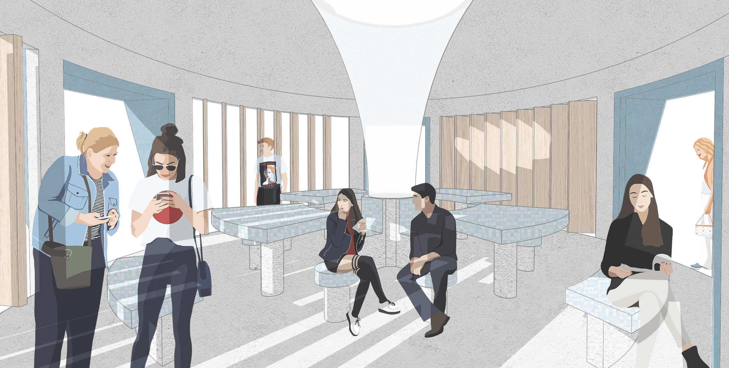 The chairs and tables are deliberately crafted to be identical, symbolizing equality. Regardless of your perspectives, race, or religion, all are welcomed here, and are part of the community.